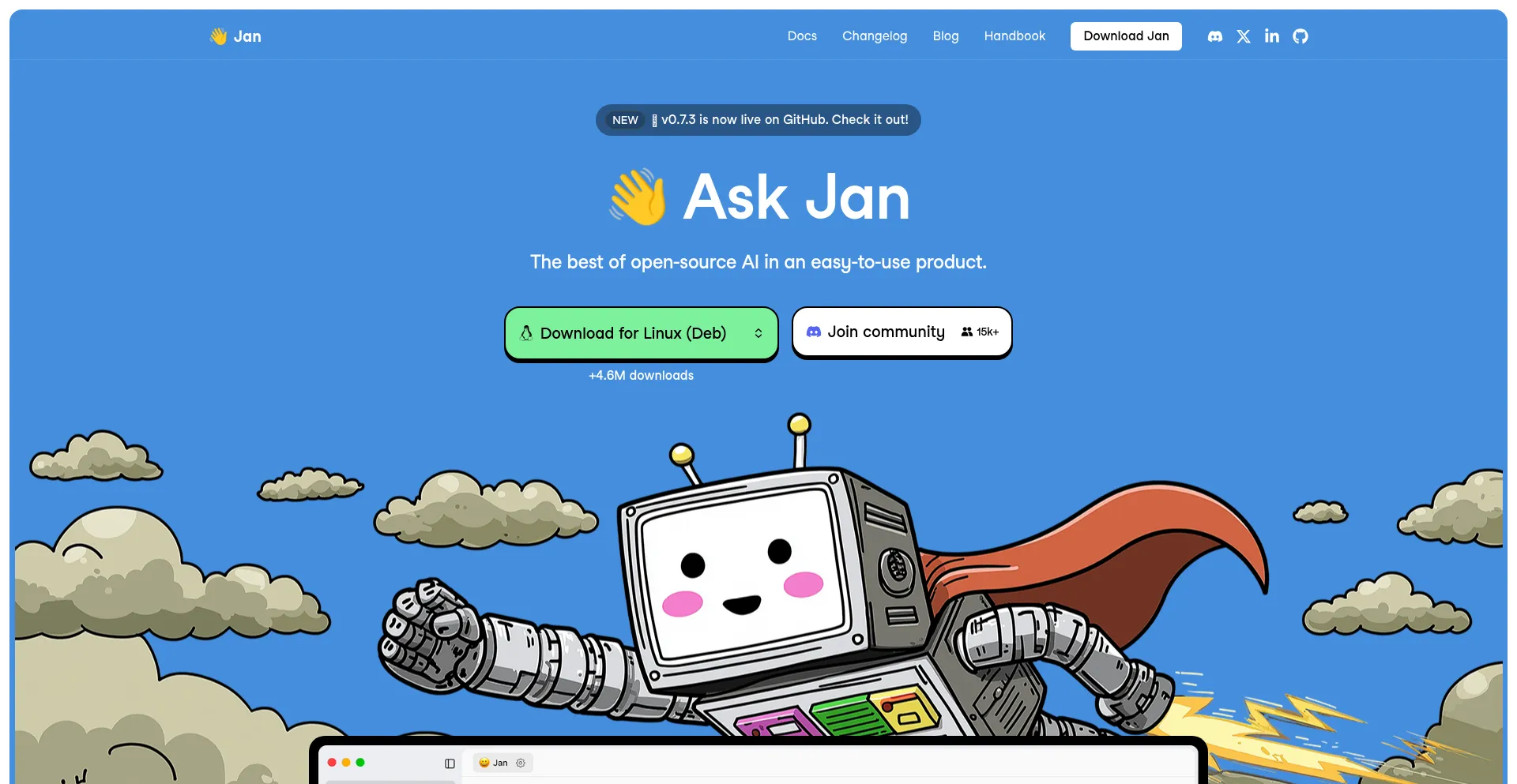 x.com discord.com www.jan.ai twitter.com pbs.twimg.com linkedin.com www.google-analytics.com react-tweet.vercel.app menlo.bamboohr.com www.googletagmanager.com +3 más