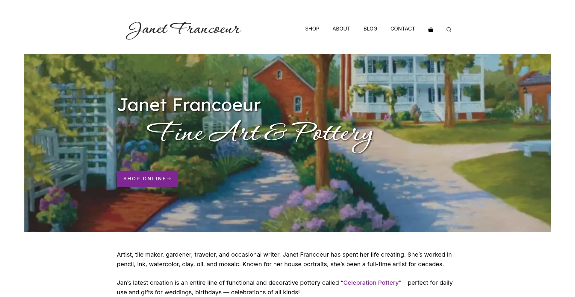 Janet Francoeur Fine Art & Pottery — original paintings, giclée prints, and handcrafted “Celebration Pottery” for everyday use or special gifts. Based in New Bern, NC.