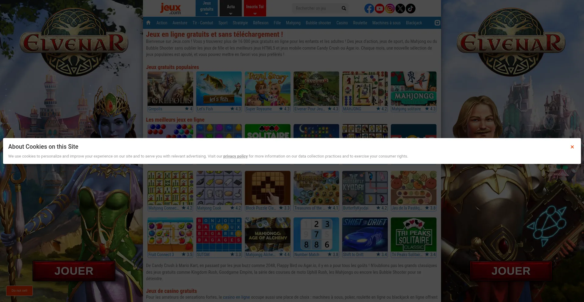 El sitio web implementa mecanismos de consentimiento de cookies en cumplimiento con regulaciones de privacidad como GDPR o CCPA. Esto demuestra que jeux.com adhiere a estándares de protección de datos y proporciona a los usuarios control sobre prácticas de recolección de datos personales.