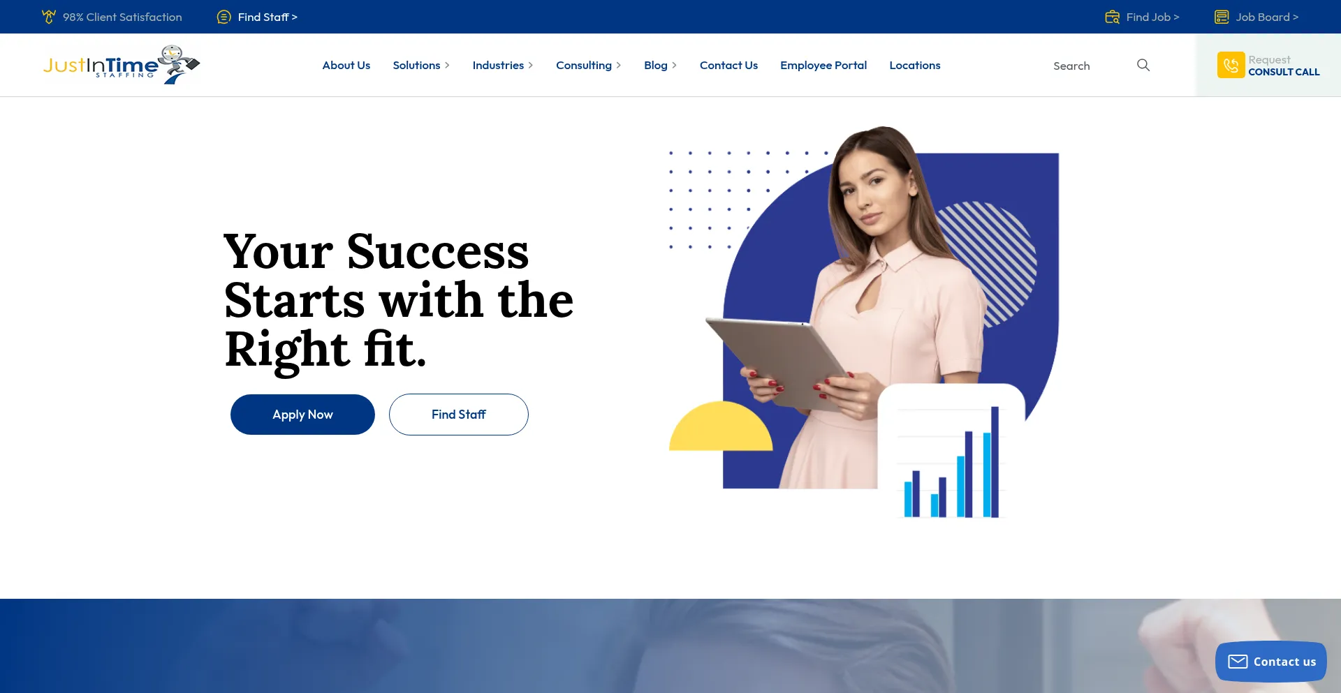 Your Success Starts with the Right fit. Apply Now Find Staff The Right People. The Right Place. The Right Time. OUR SOLUTIONS INDUSTRIES ABOUT US Let Us Work For You! At Just In...