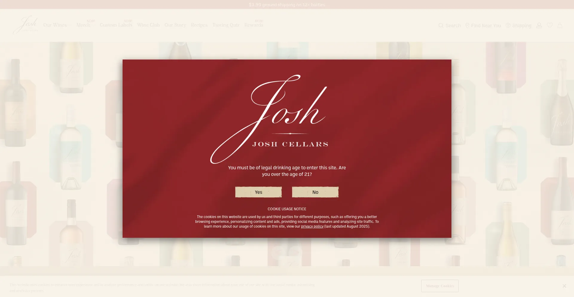 El sitio web implementa mecanismos de consentimiento de cookies en cumplimiento con regulaciones de privacidad como GDPR o CCPA. Esto demuestra que joshcellars.com adhiere a estándares de protección de datos y proporciona a los usuarios control sobre prácticas de recolección de datos personales.
