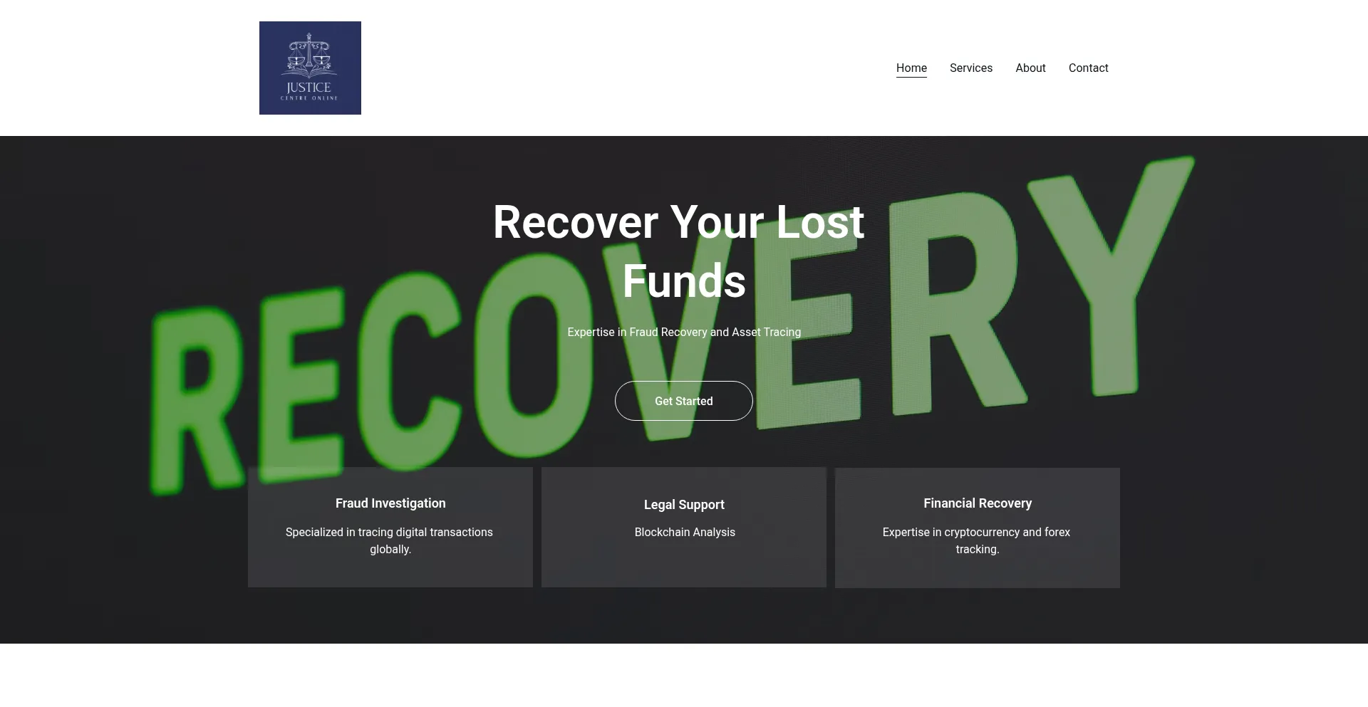 El sitio web justicecentreonline.co.uk anuncia servicios de recuperación de fondos para activos perdidos o robados. Mientras algunos operan en estructuras de honorarios de contingencia, otros pueden requerir pagos por adelantado, lo que puede indicar operaciones fraudulentas. Verifique credenciales y cumplimiento regulatorio antes de contratar tales servicios.