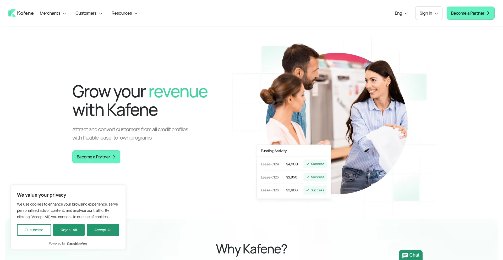 Grow your revenue with Kafene. Attract and convert customers from all credit profiles with flexible lease-to-own programs