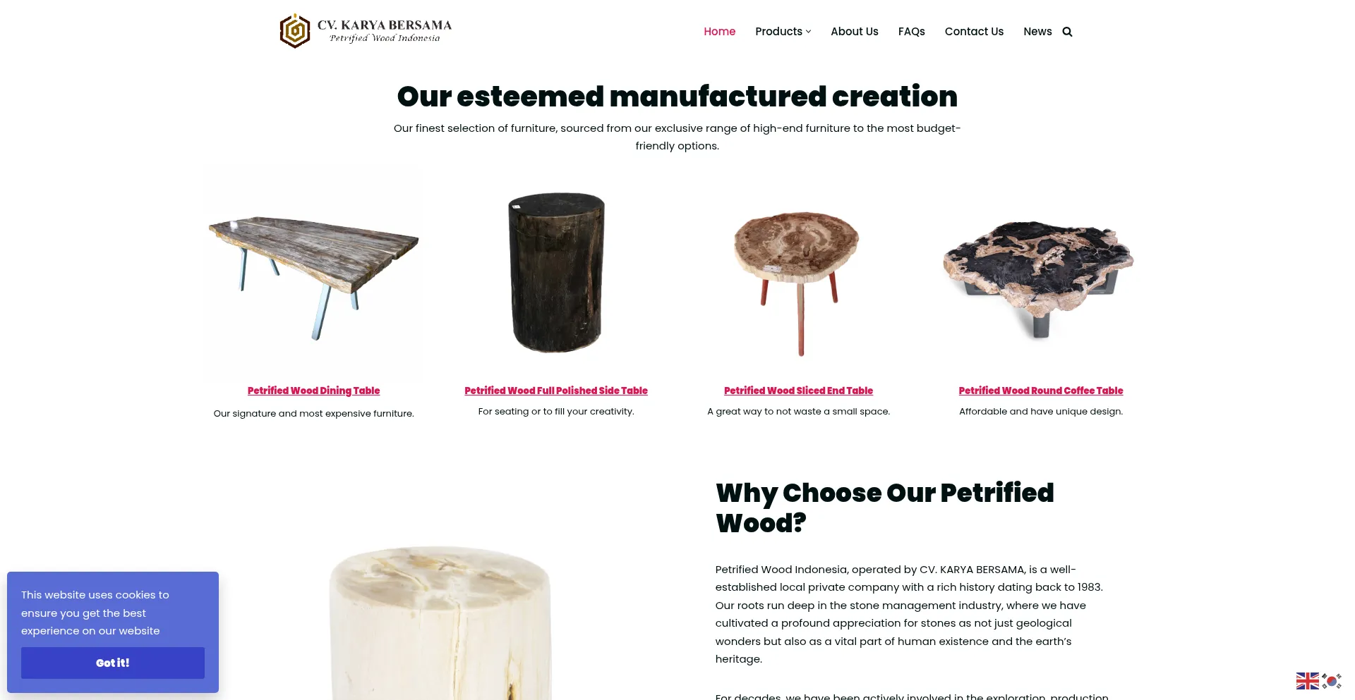 We are the foremost supplier and exporter of petrified wood furniture in Indonesia, setting the benchmark in manufacturing excellence since 1983.