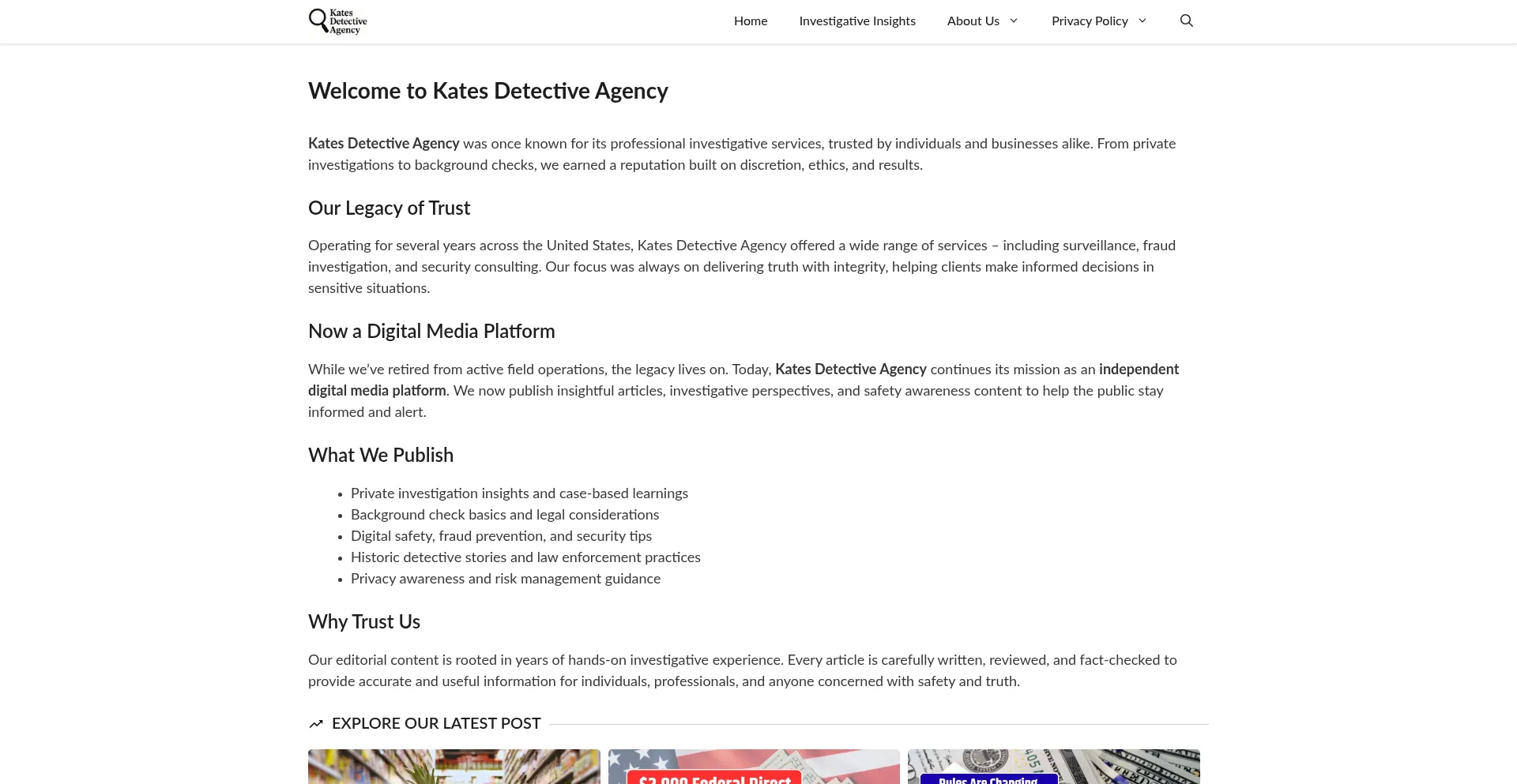 Formerly a trusted private investigation firm, Kates Detective Agency now publishes expert content on privacy, safety, and investigative insights. Explore our new digital platform.
