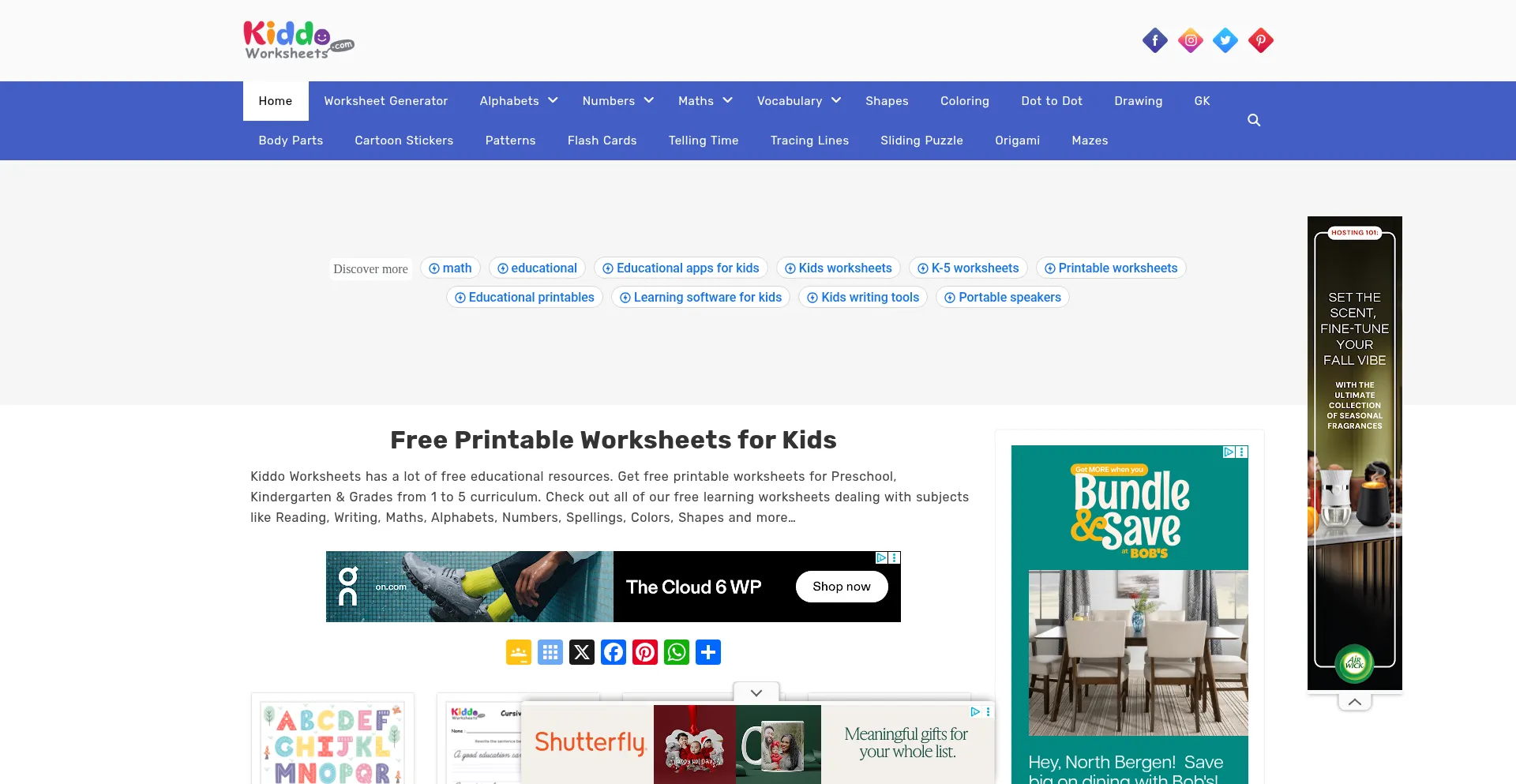 Kiddo Worksheets has a lot of free educational resources. Get free printable worksheets for Preschool, Kindergarten & Grades from 1 to 5.
