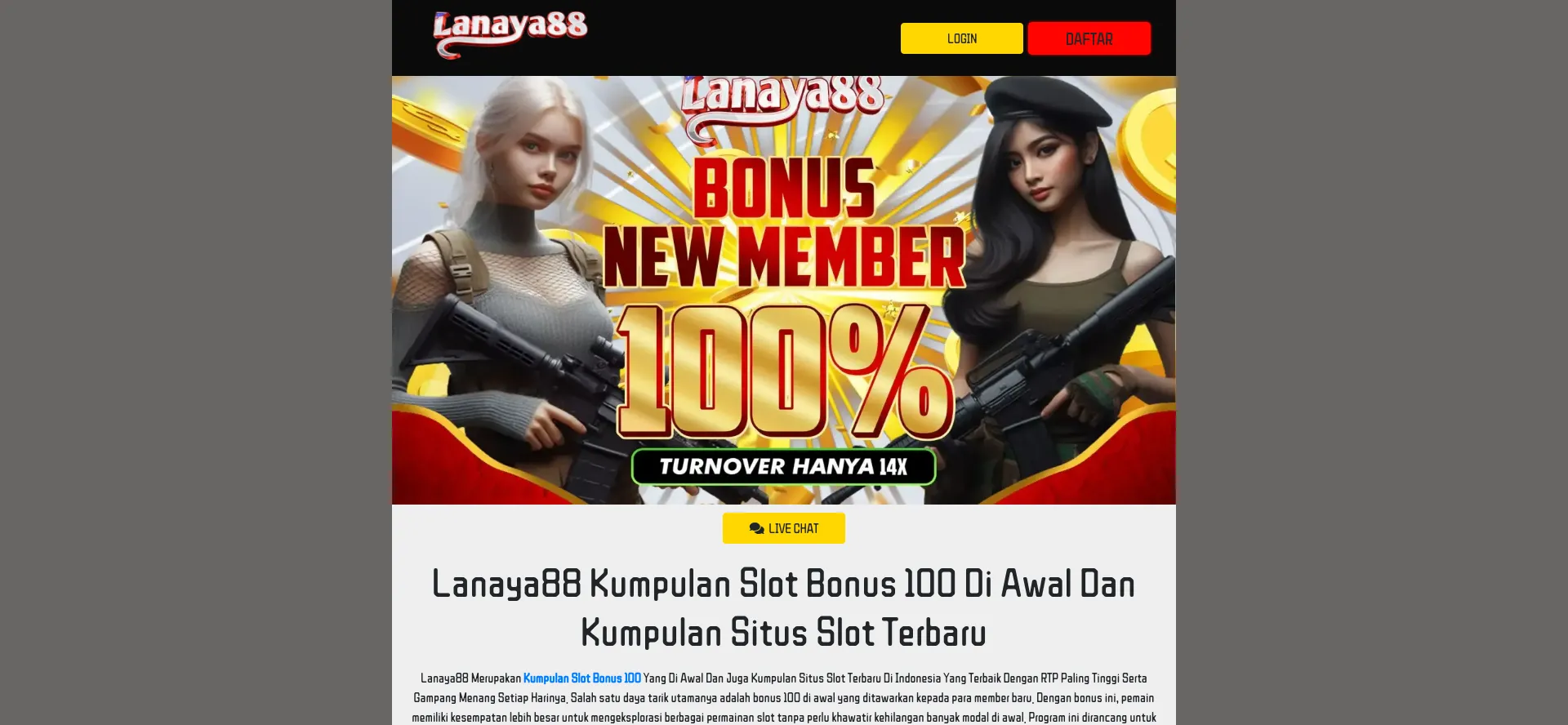 Lanaya88 Merupakan Kumpulan Slot Bonus 100 Yang Di Awal Dan Juga Kumpulan Situs Slot Terbaru Di Indonesia Yang Terbaik Dengan RTP Paling Tinggi Serta Gampang Menang Setiap Harin...