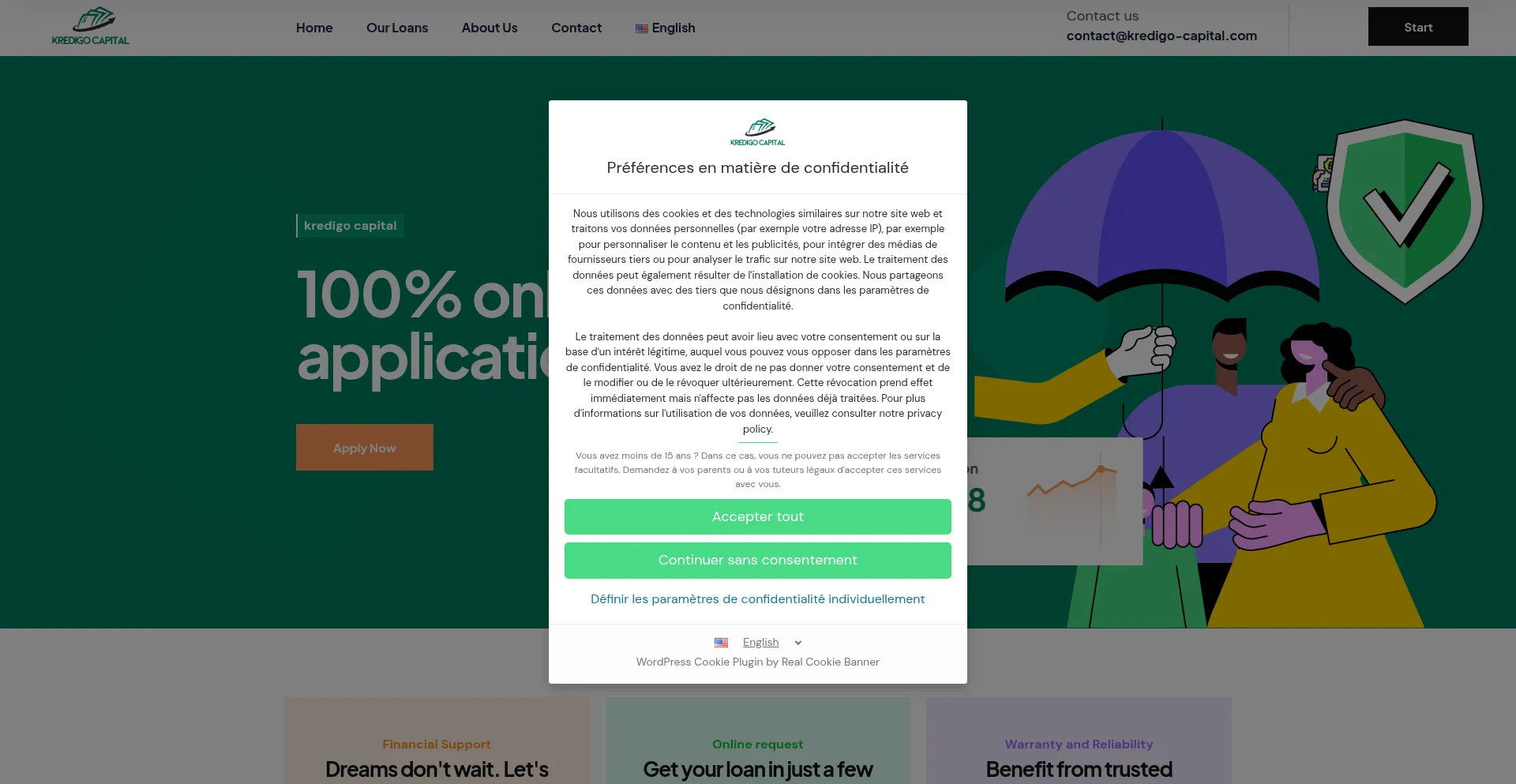 El sitio web implementa formularios de recolección de datos solicitando información personal incluyendo nombres, direcciones de correo electrónico, números de teléfono u otros detalles sensibles. Los usuarios deben verificar la legitimidad de kredigo-capital.com y revisar políticas de privacidad antes de enviar datos personales.