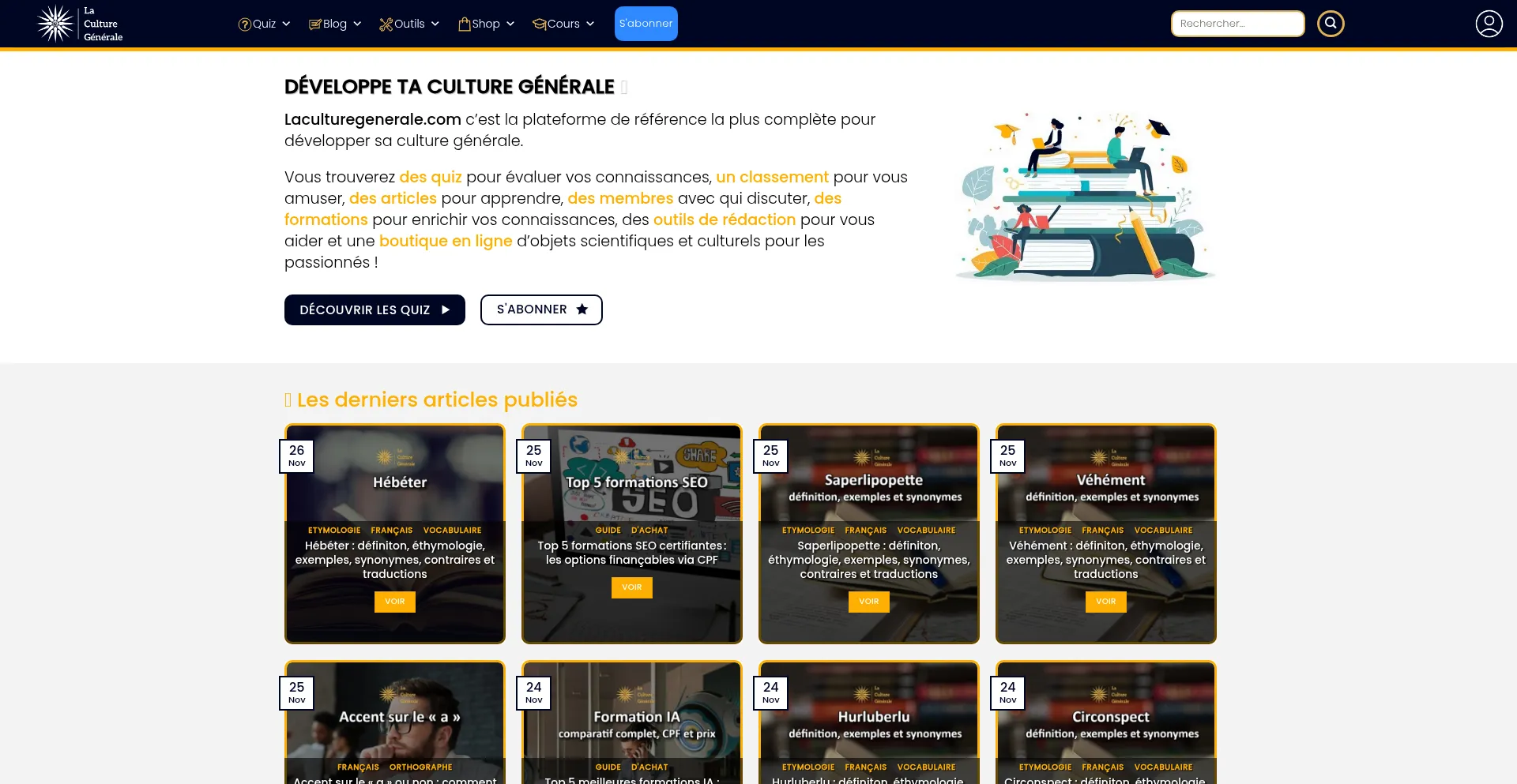 Laculturegenerale.com, la plateforme complète qui vous propose des quiz, articles, cours en ligne et un forum pour enrichir votre savoir !