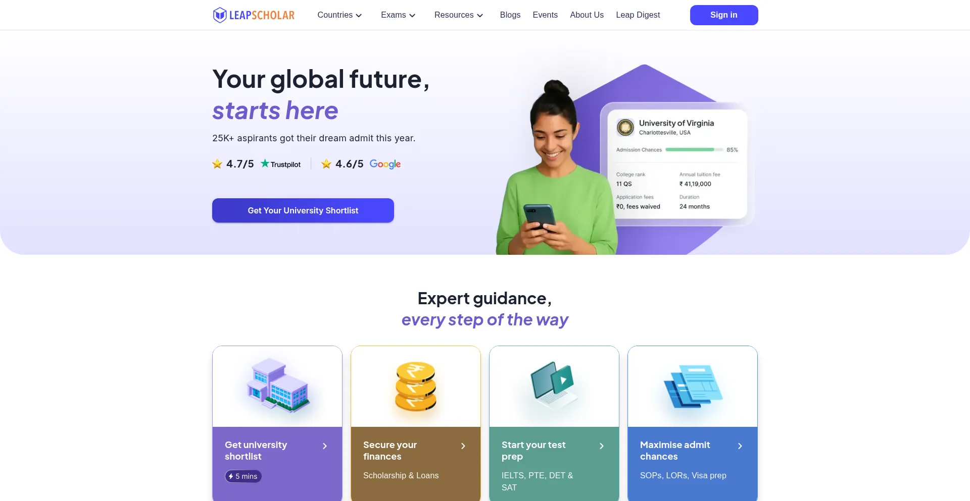 Want to Study Abroad? LeapScholar provides Personalized Guidance and information on top universities, courses, IELTS Coaching, Financial Help and Visa Assurance. Get Counselling...