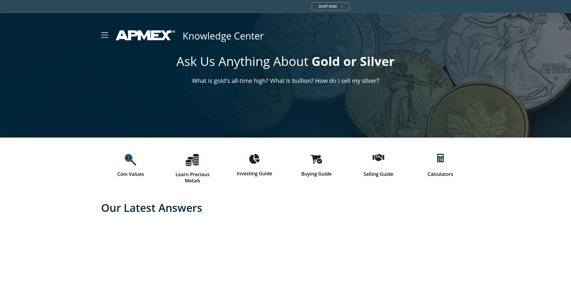 Ask us anything about gold or silver. Learn about precious metals. From investing guides, to coin values to tax laws and local coin directories.