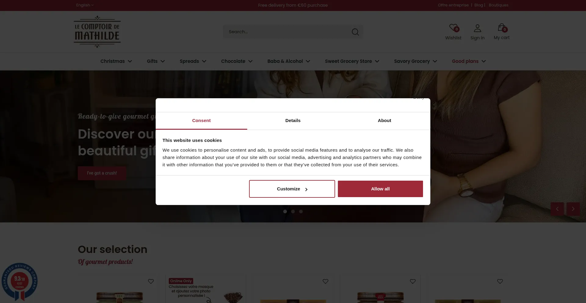 El sitio web implementa mecanismos de consentimiento de cookies en cumplimiento con regulaciones de privacidad como GDPR o CCPA. Esto demuestra que lecomptoirdemathilde.com adhiere a estándares de protección de datos y proporciona a los usuarios control sobre prácticas de recolección de datos personales.