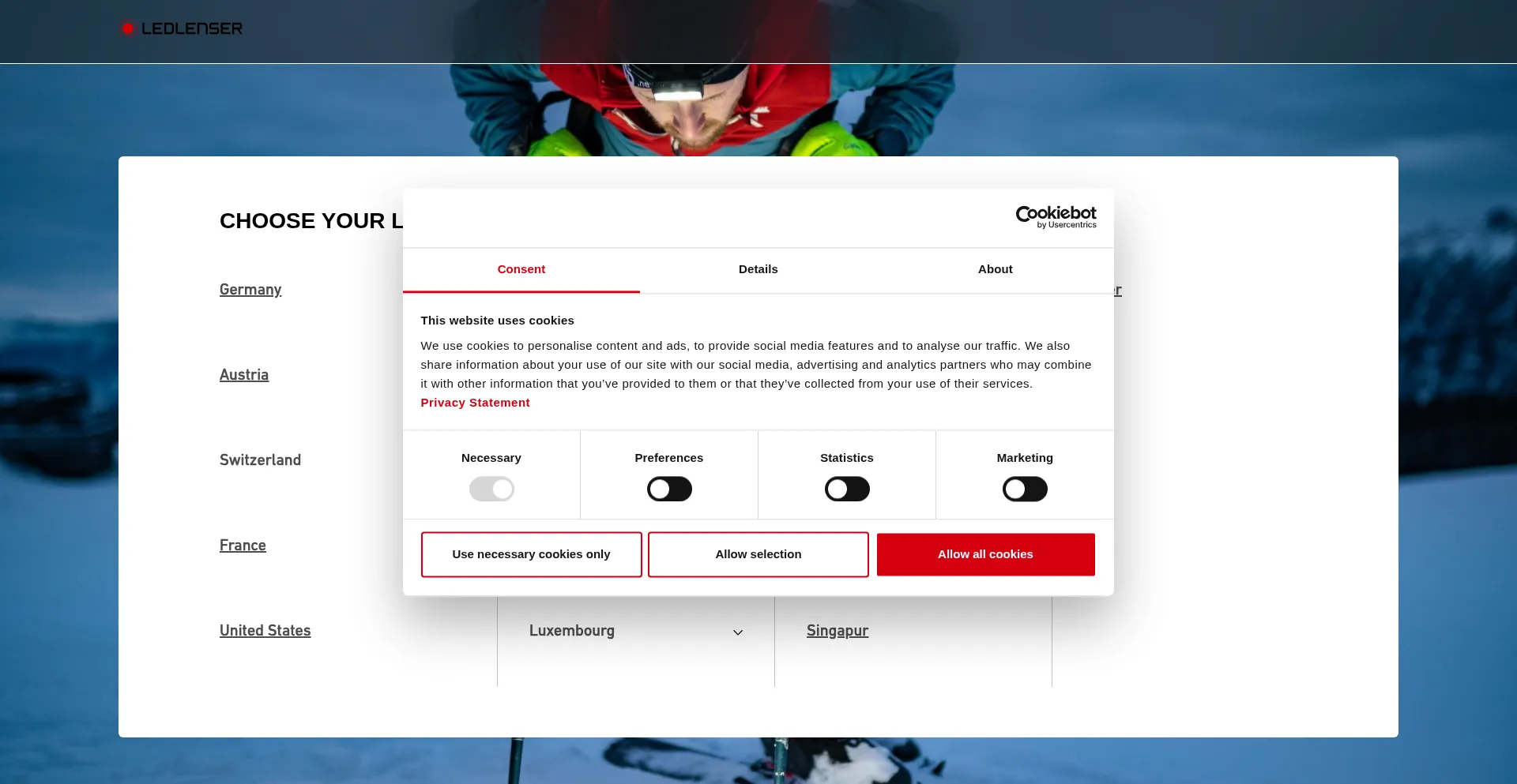 El sitio web implementa mecanismos de consentimiento de cookies en cumplimiento con regulaciones de privacidad como GDPR o CCPA. Esto demuestra que ledlenser.com adhiere a estándares de protección de datos y proporciona a los usuarios control sobre prácticas de recolección de datos personales.