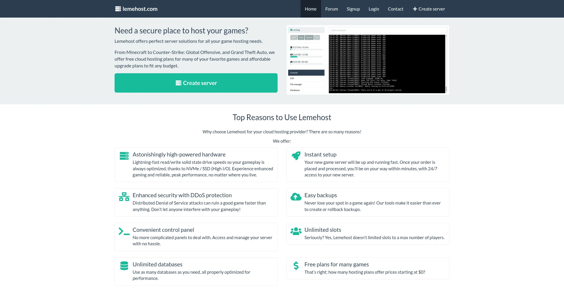 Lemehost offers perfect server solutions for all your game hosting needs.