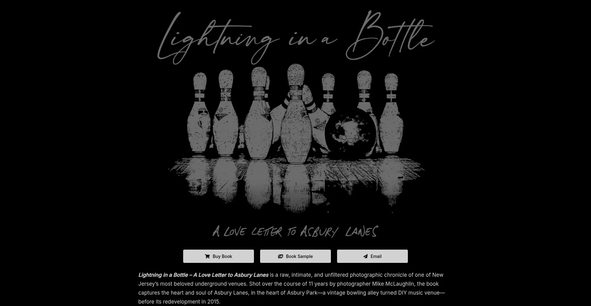 Buy Book Book Sample Email Lightning in a Bottle – A Love Letter to Asbury Lanes is a raw, intimate, and unfiltered photographic chronicle of one of New Jersey’s most b...