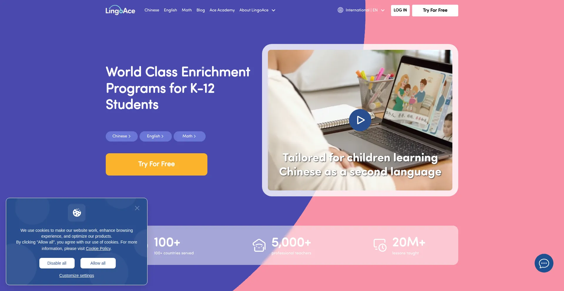 LingoAce provides a fun & engaging online learning platform for kids aged 3-15. Learn our Chinese class, English Class and Math Class today. Sign up for a free trial!