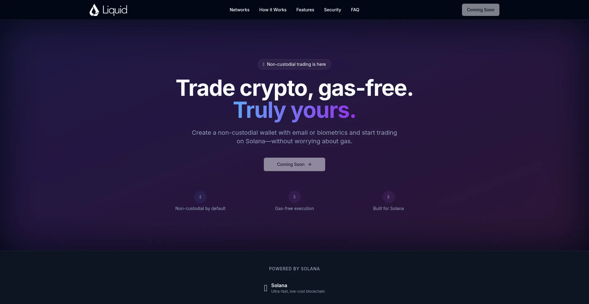 Trade crypto, gas-free. Create a non-custodial wallet with email or biometrics and start trading on Solana—without worrying about gas.