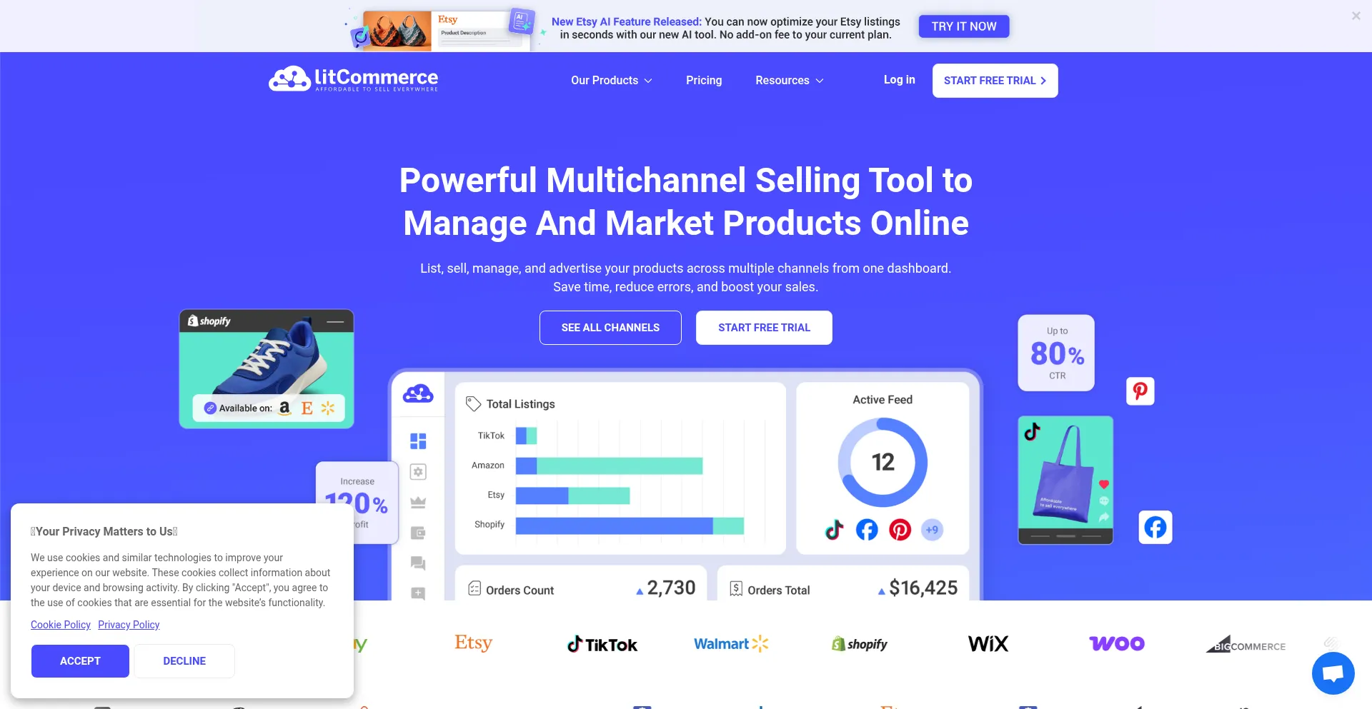 Sell on multiple marketplaces easily with our multichannel selling tool. Create listings, publish on multiple marketplaces, and manage orders from one dashboard.