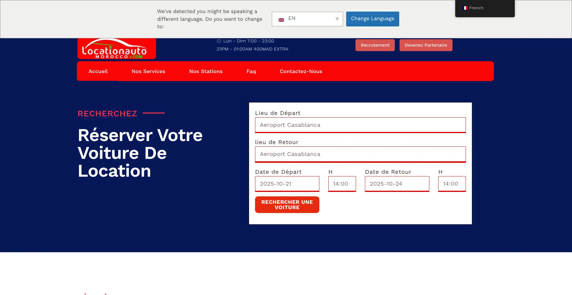 Recherchez Réserver votre voiture de location Récupération de voiture Service rapide et pratique pour récupérer votre véhicule à l’aéroport. Service rencontre Accueil ...