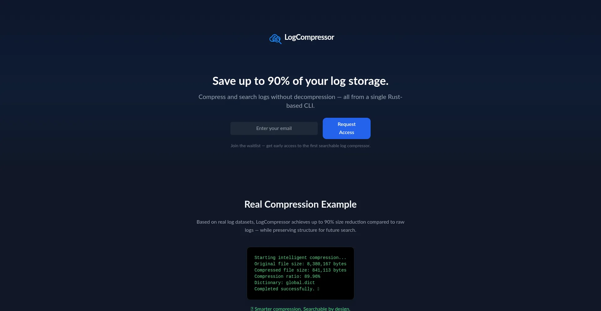 Save up to 90% of space and enable fast search directly over compressed logs — no extraction required. LogCompressor CLI is a Rust-based intelligent log compressor built for d...