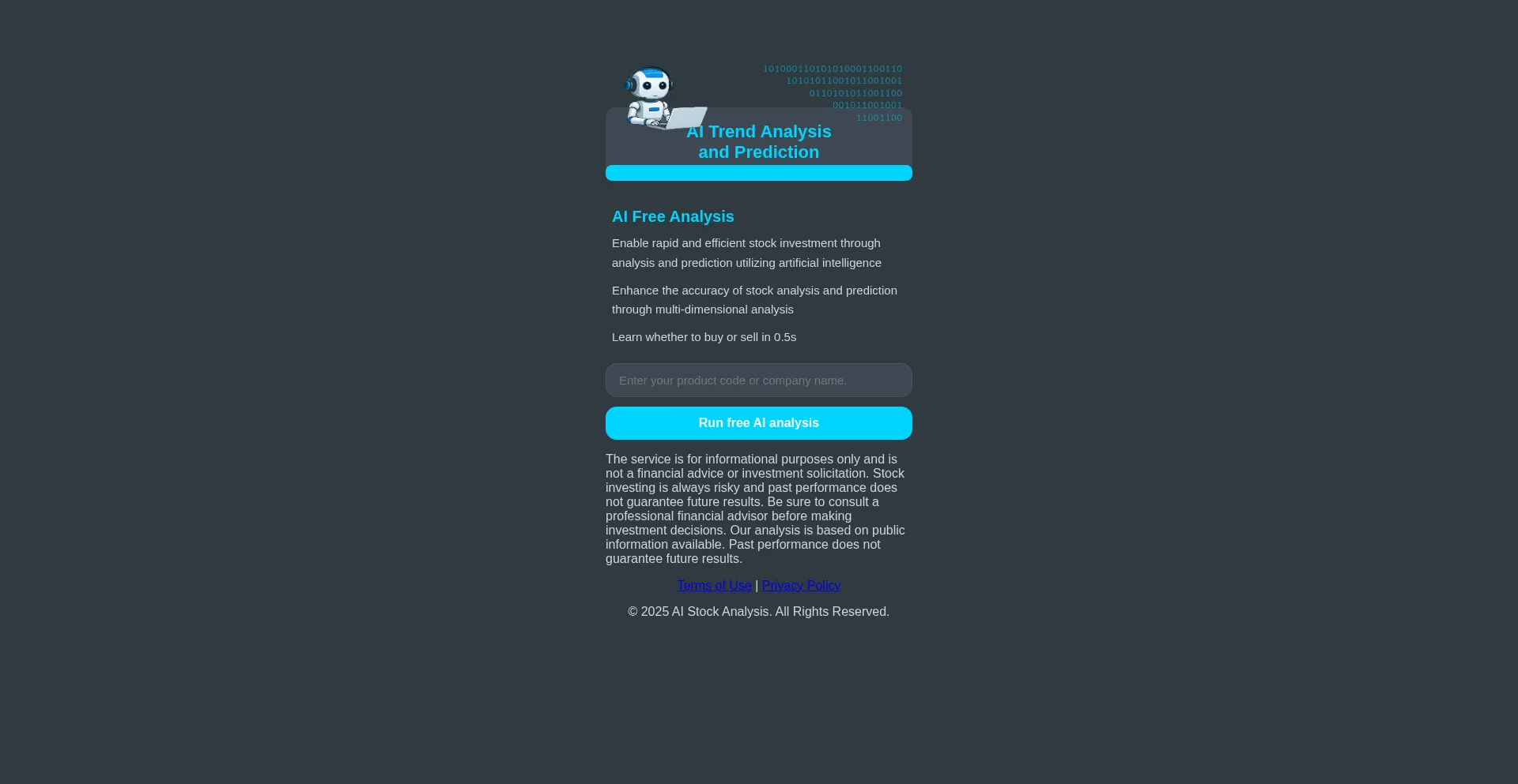 The service is for informational purposes only and is not a financial advice or investment solicitation.