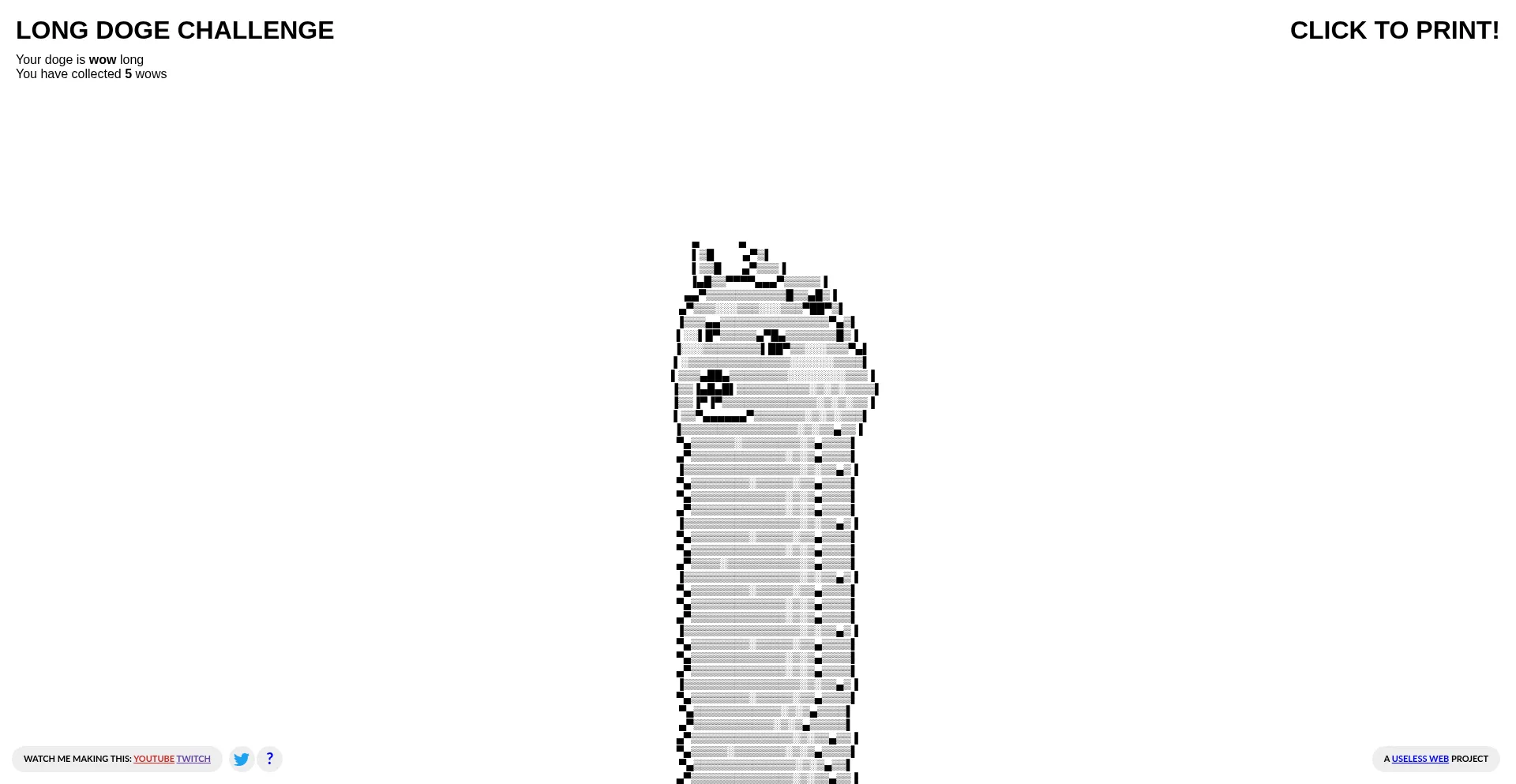 The website of the one and only long doge challenge. Don't forget to PRINT!