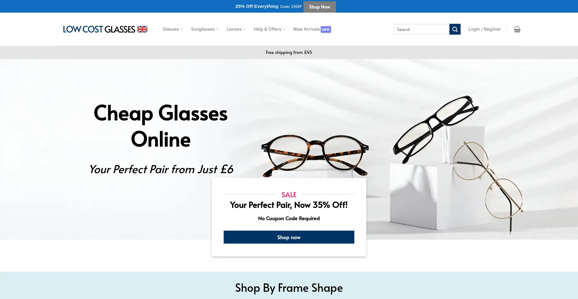 Cheap Prescription Glasses from £6 - Buy Prescription Glasses Online, including bifocal, varifocal ,spectacles & prescription sunglasses.