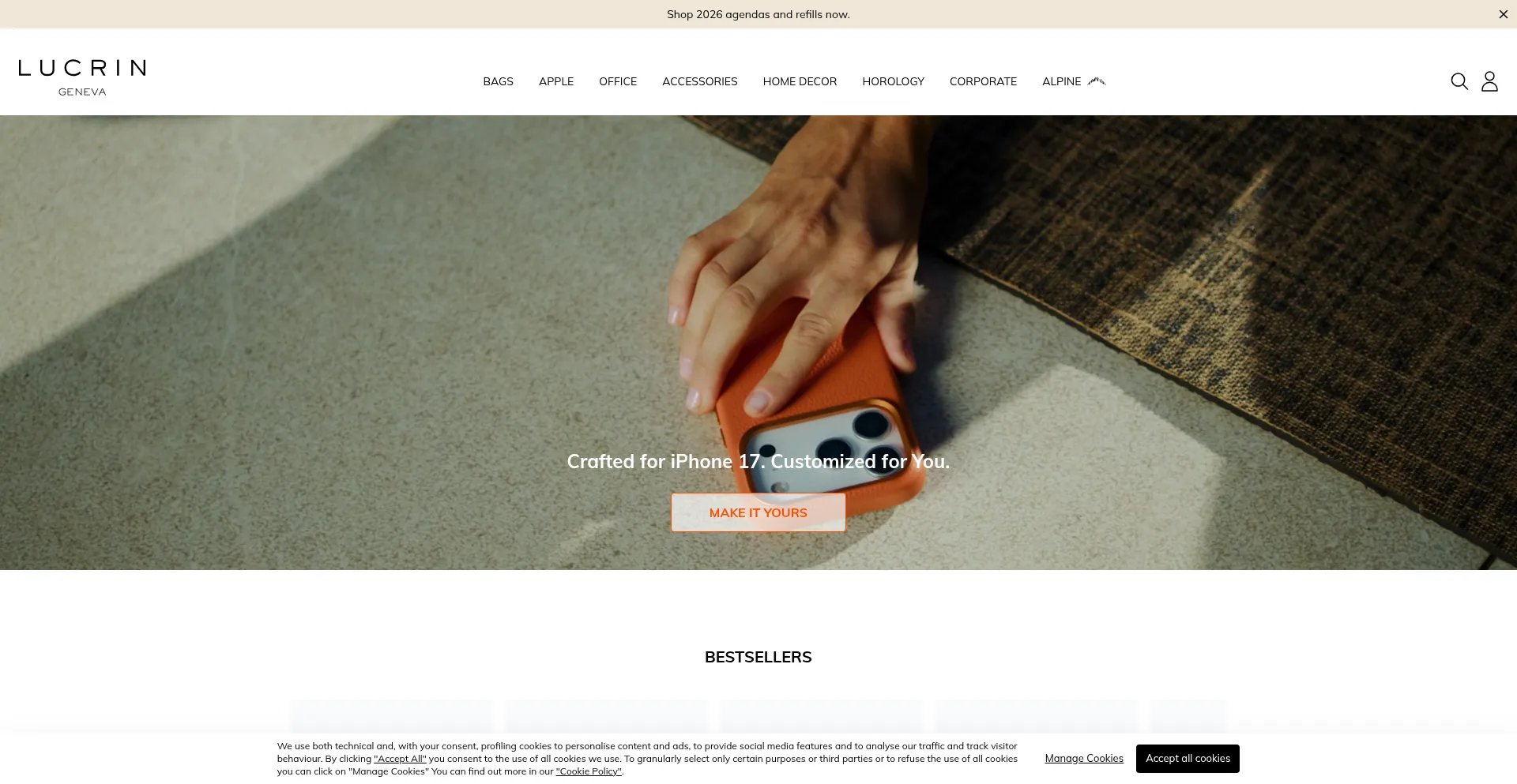 Discover customizable luxury leather goods at Lucrin Geneva USA. Shop premium bags, Apple cases, and accessories. Enjoy free delivery on personalized items.