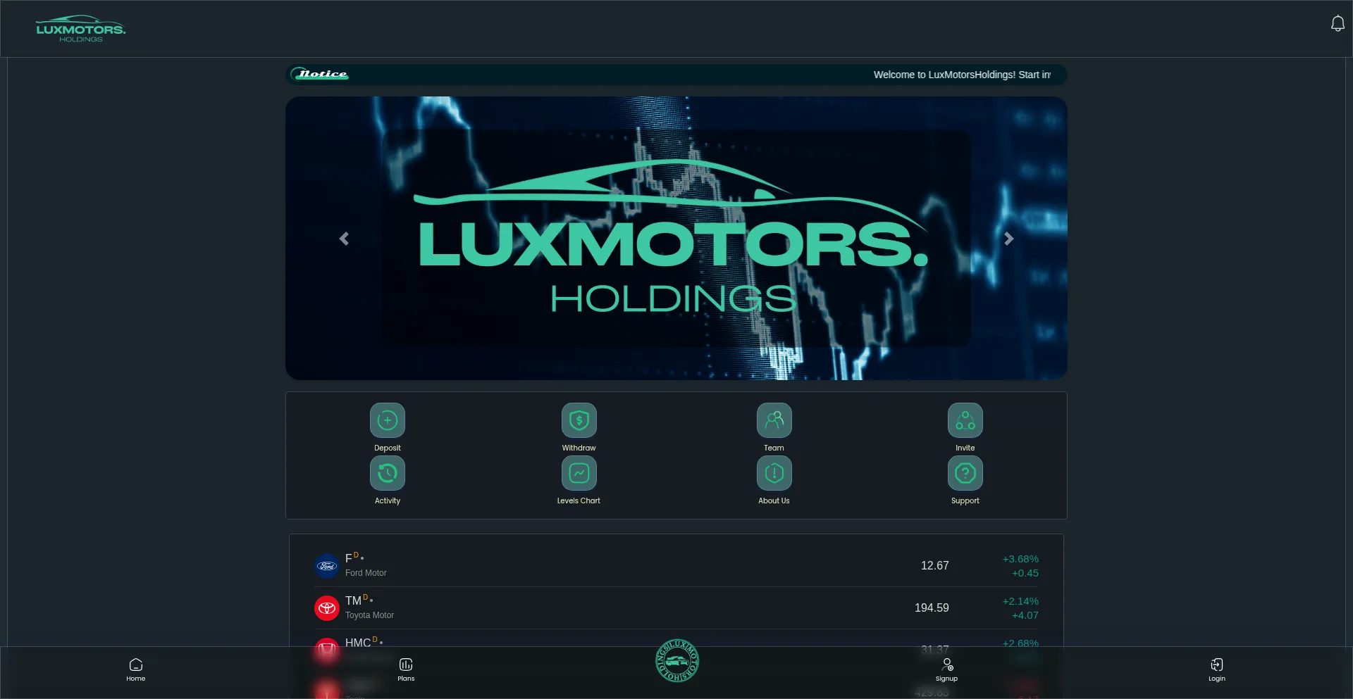 Join LuxMotorsHoldings and start earning daily returns on your investments. Safe, simple, and effective.