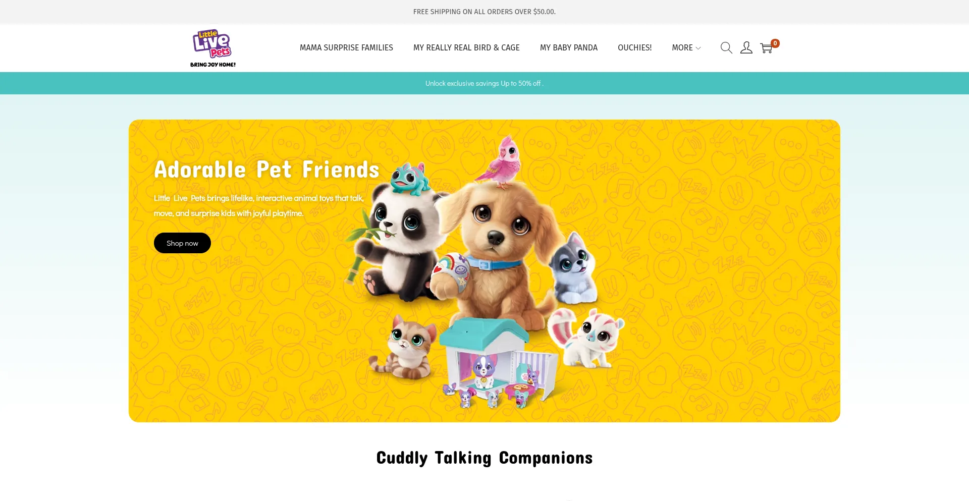 Unlock exclusive savings Up to 50% off . Adorable Pet Friends Little Live Pets brings lifelike, interactive animal toys that talk, move, and surprise kids with joyful playtime. ...