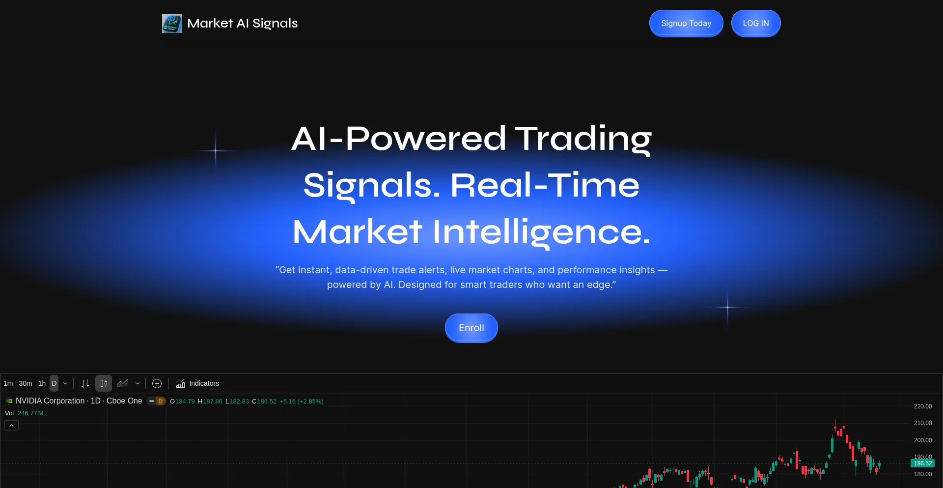 “Get instant, data-driven trade alerts, live market charts, and performance insights — powered by AI.