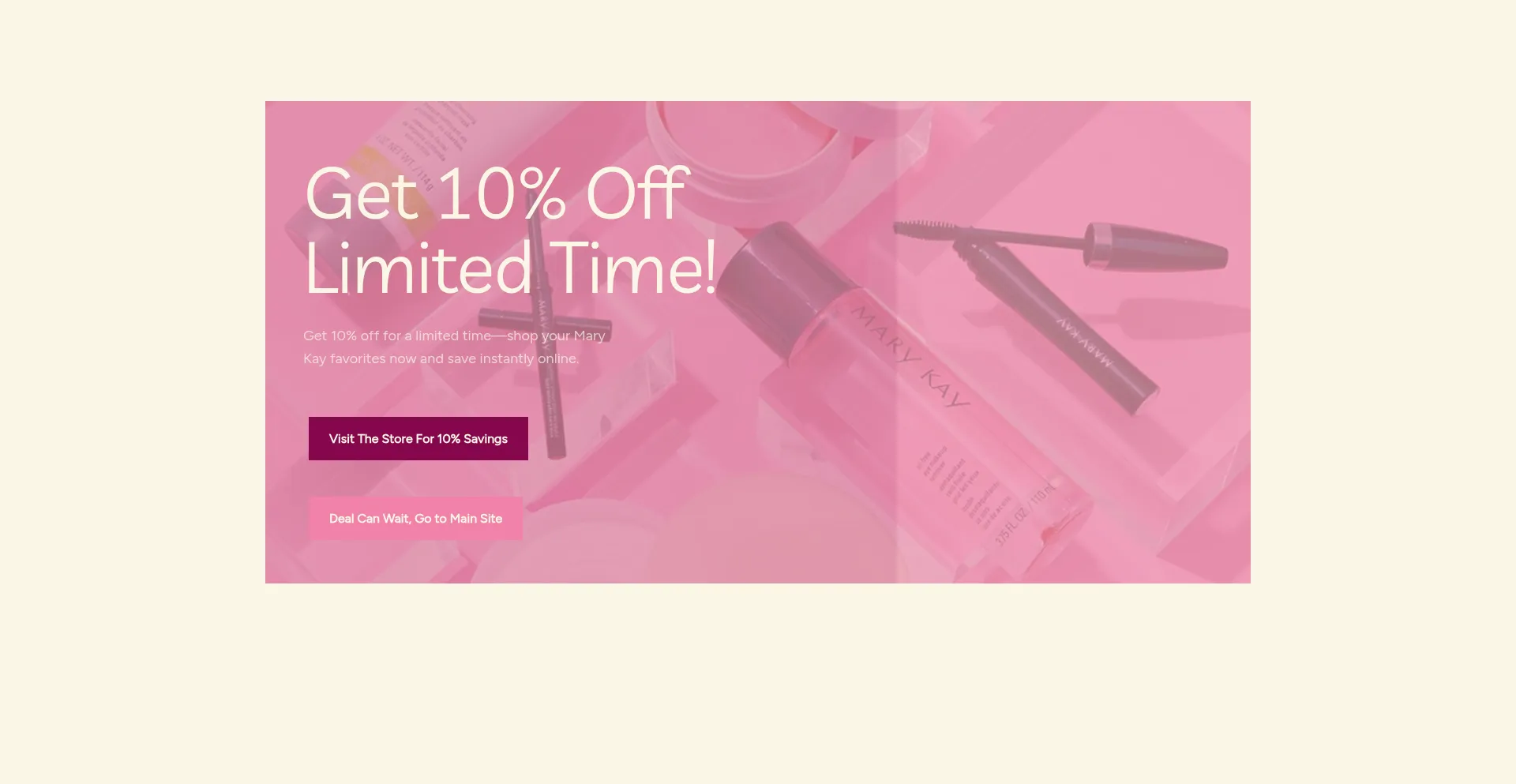Get 10% off for a limited time—shop your Mary Kay favorites now and save instantly online.