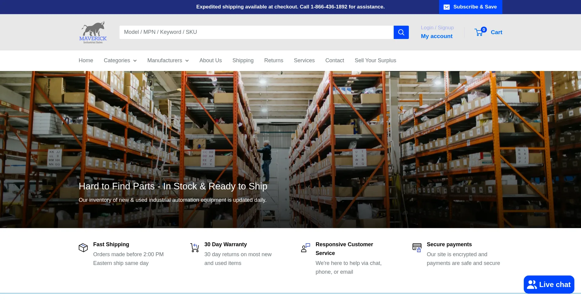 Shop surplus MRO & automation parts at Maverick Industries Sales. Great prices, fast shipping, 30-day returns & expert support. Call (269) 932-3156 today!