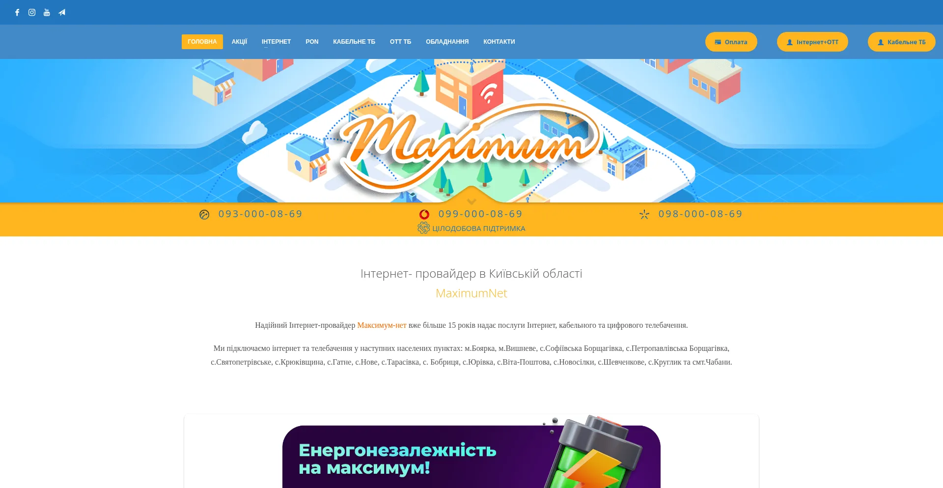 MaximumNet підключення інтернет та телебачення. Підтримка 24/7
