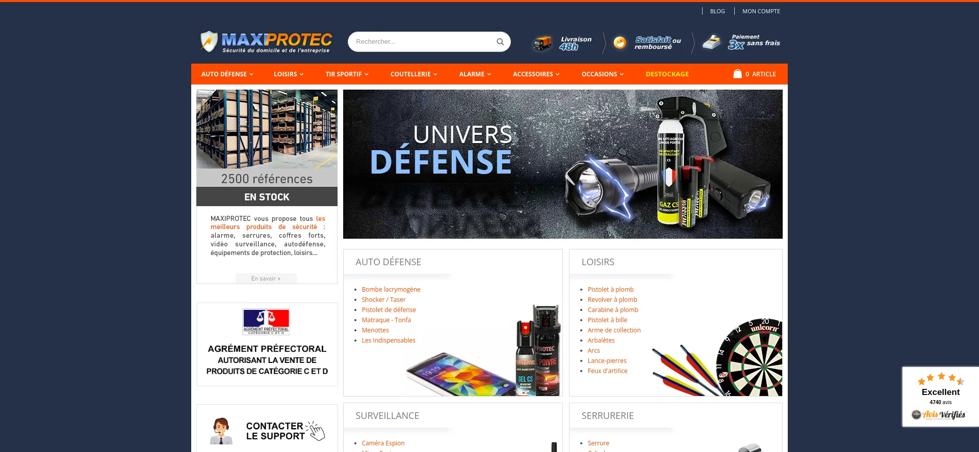 Maxiprotec - Armurerie en ligne, arme de défense, bombe lacrymogène, taser, matraque, pistolet d'alarme et armes de tir sportif
