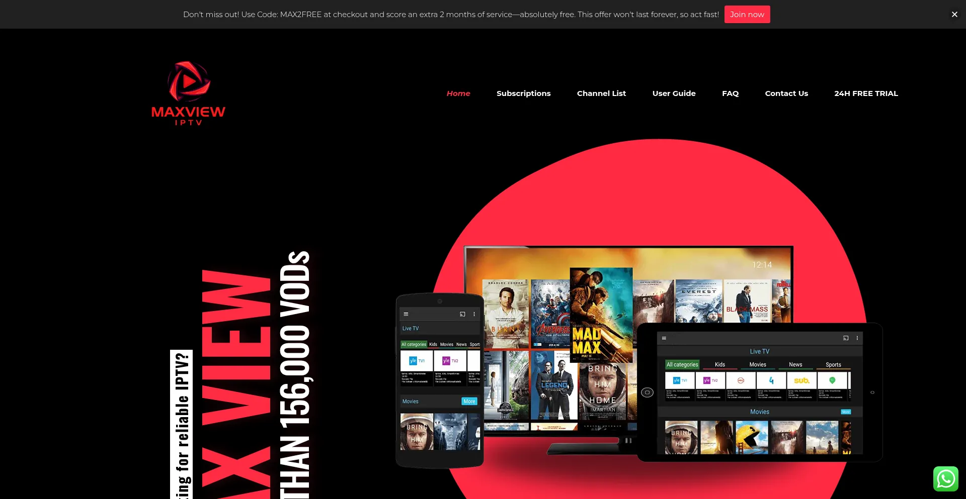 Are you looking for reliable IPTV? MAX VIEWMORE THAN 156,000 VODs Free Trial Subscribe OUR SERVICES Access all your favorite premium channels Start the process CHOOSE THE BEST I...
