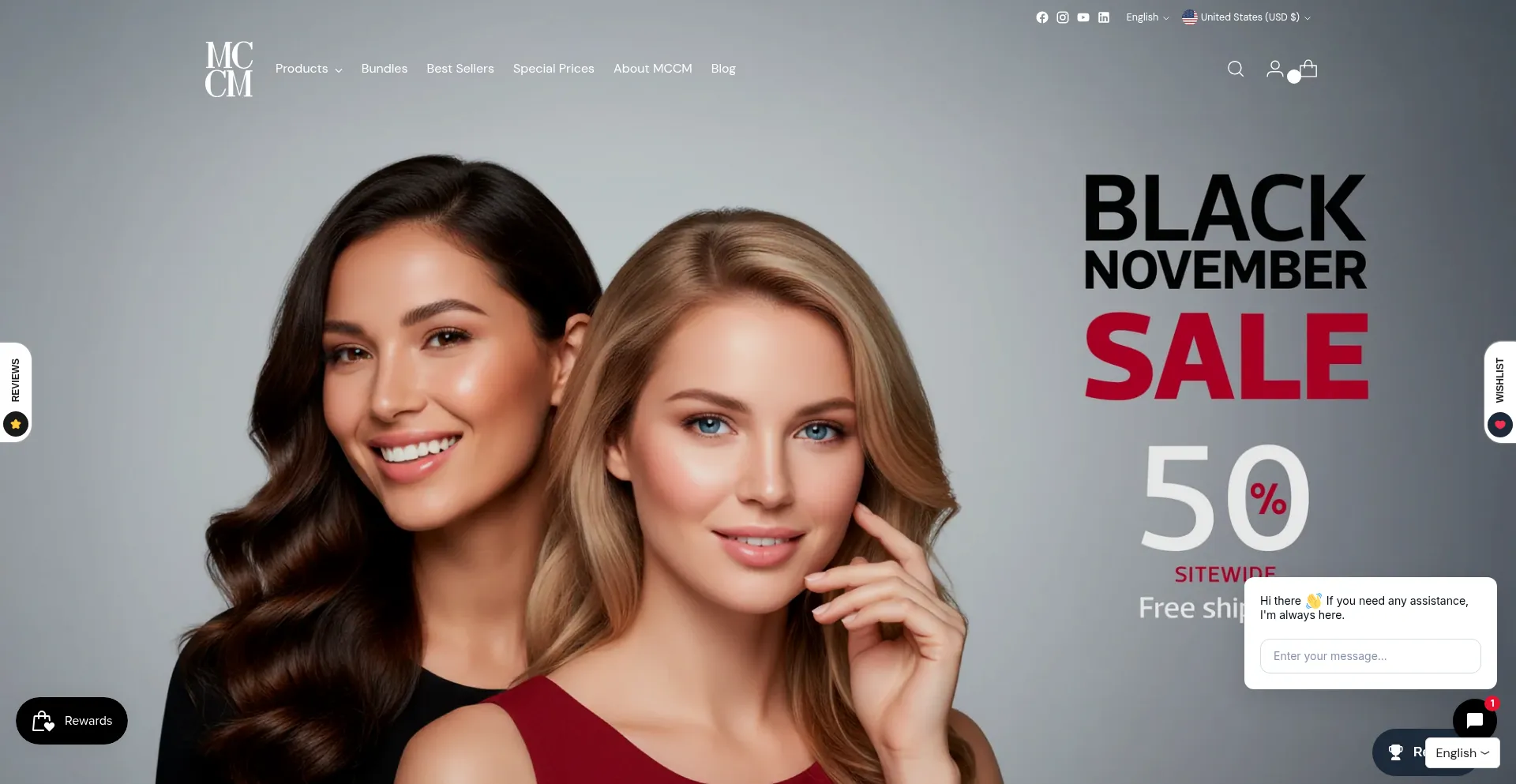 La presencia de enlaces de redes sociales en el sitio web indica que mccmmedicalcosmetics.com mantiene cuentas oficiales en redes sociales, lo que es un indicador positivo de credibilidad y compromiso.