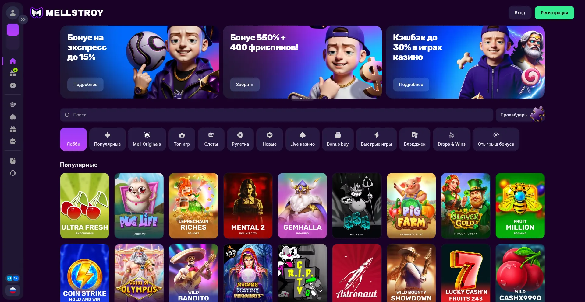 Mellstroy Casino — новый бренд от Мелстроя в сфере казино. Слоты, быстрые выплаты и бонусы для новых игро...