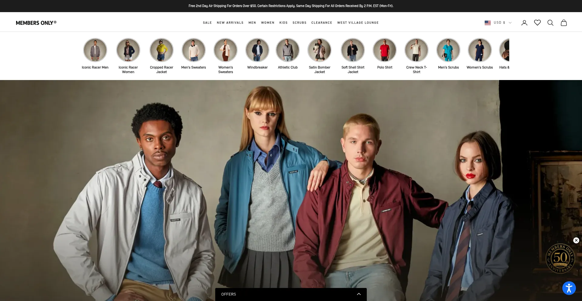 Visit the official Members Only online store to shop our classic iconic racer jacket and new men's and women's jackets, medical uniforms, apparels, footwear and accessories. The...