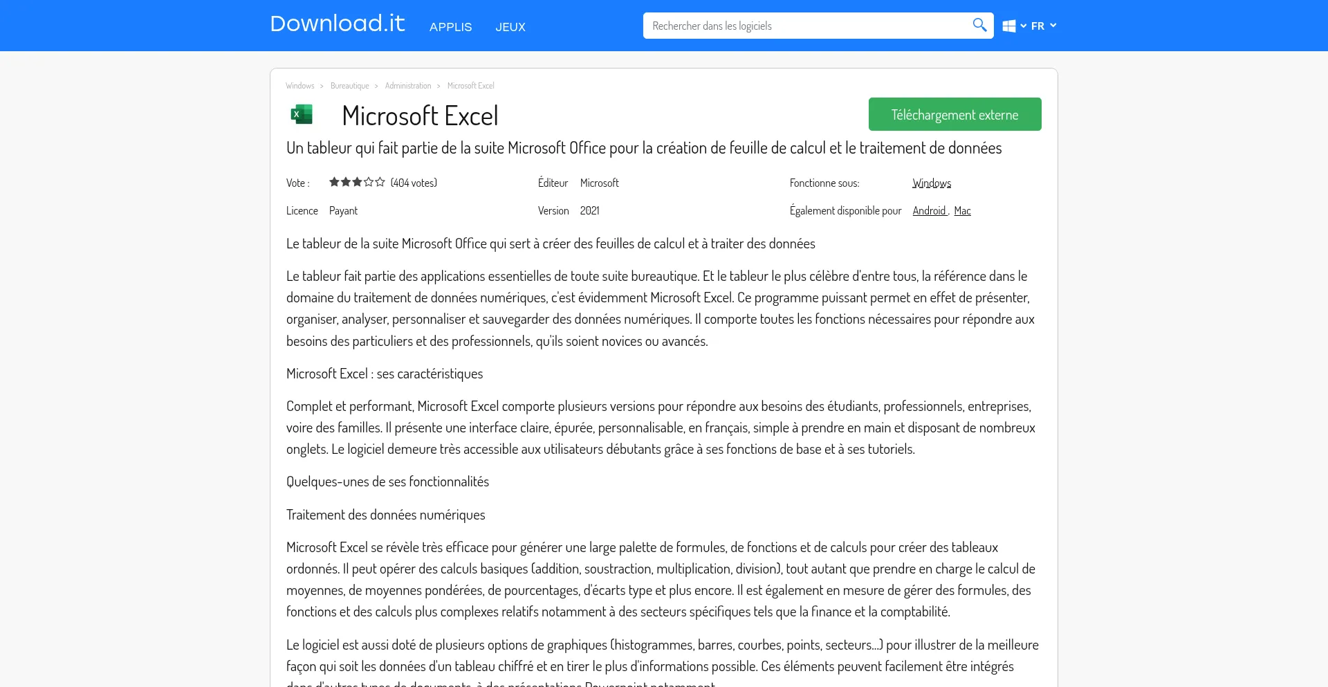Microsoft-excel.fr.download.it Reseña del sitio web