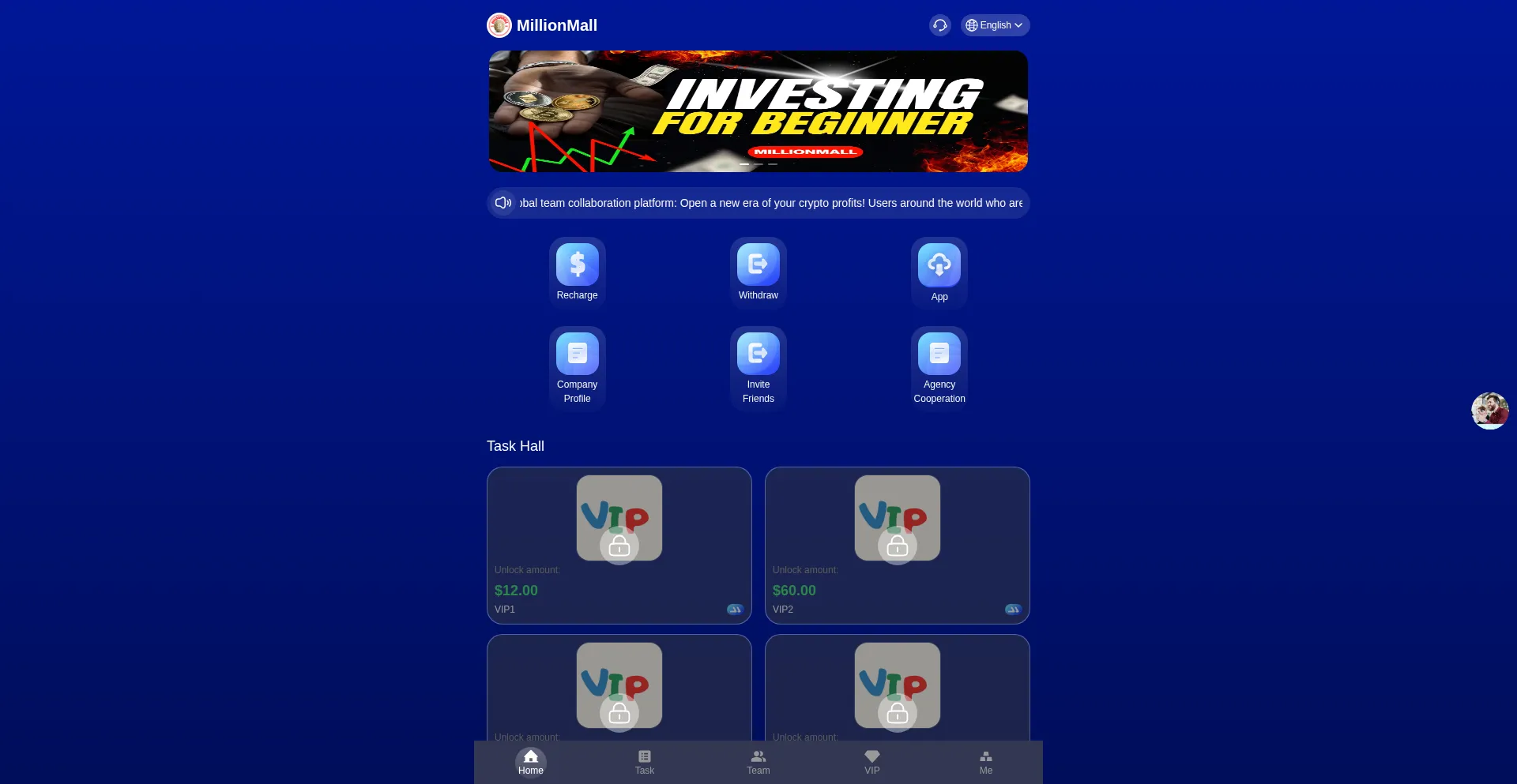 Millionmall.top opera una plataforma financiera fraudulenta promoviendo oportunidades de inversión engañosas con promesas de retornos irreales. El análisis de seguridad indica que la plataforma emplea tácticas consistentes con esquemas Ponzi y fraude de tarifa anticipada diseñados para extraer fondos de usuarios e información personal.