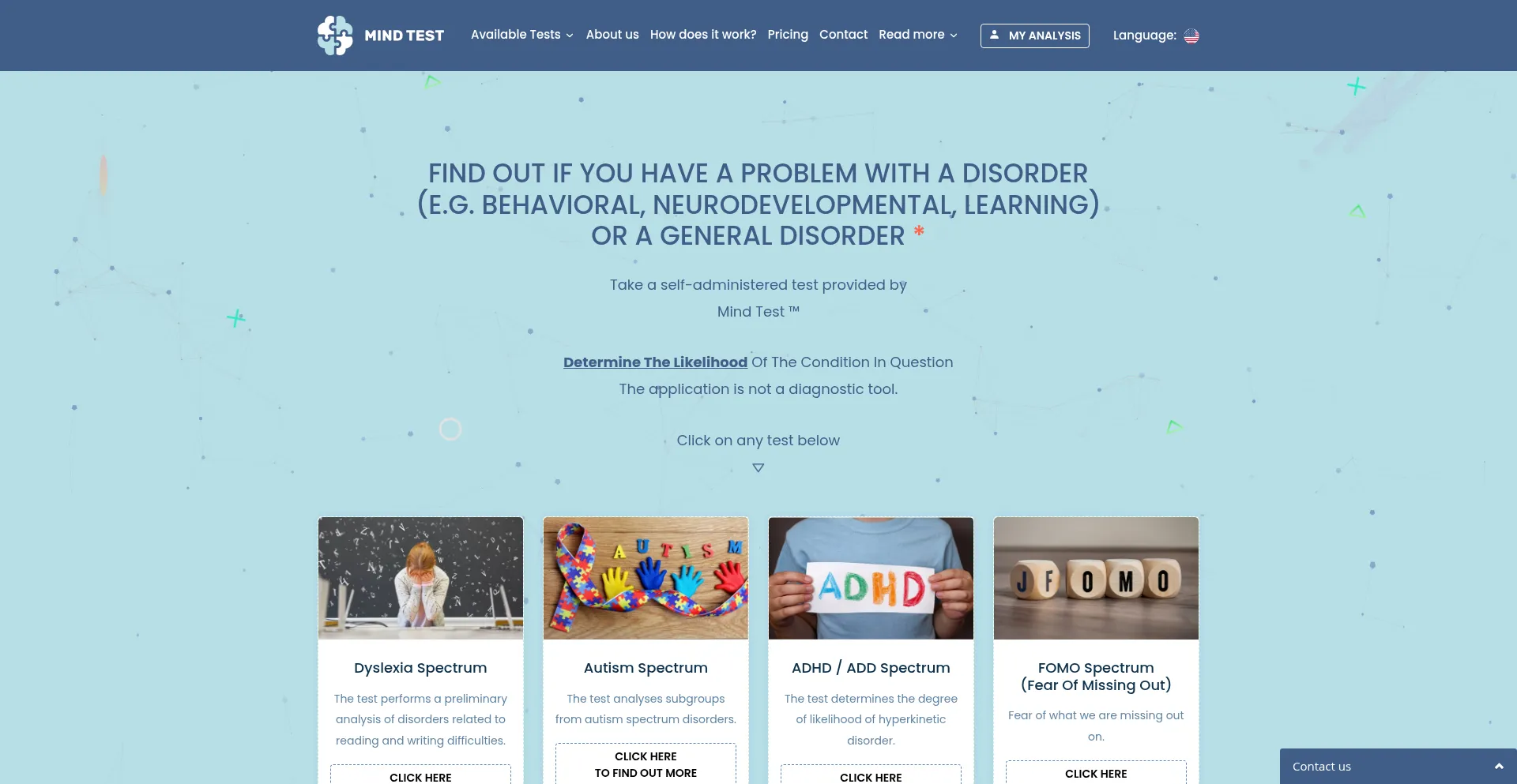 Self-Administered Mind Health - Mind Test ™ - Application is not a diagnostic tool