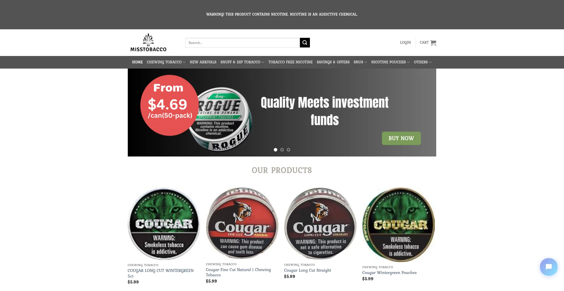 Tobacco (Chewing, Poular Brands, Stoker’s, Snuff & Dip, Fine Cut, Pouches, Long Cut, Tobacco Free Nicotine, Snus, Nicotine Pouches, Sesh, Nicotine Gums)