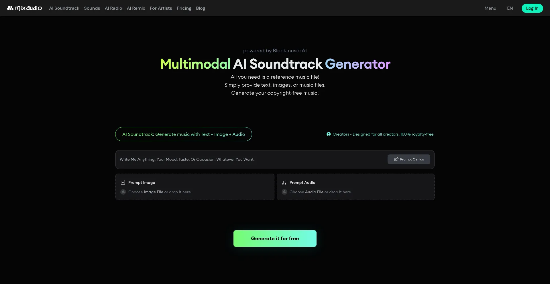 As creators, express your musical imagination with MixAudio 믹스오디오, a multimodal AI music generator - BGM, REMIX, RADIO.