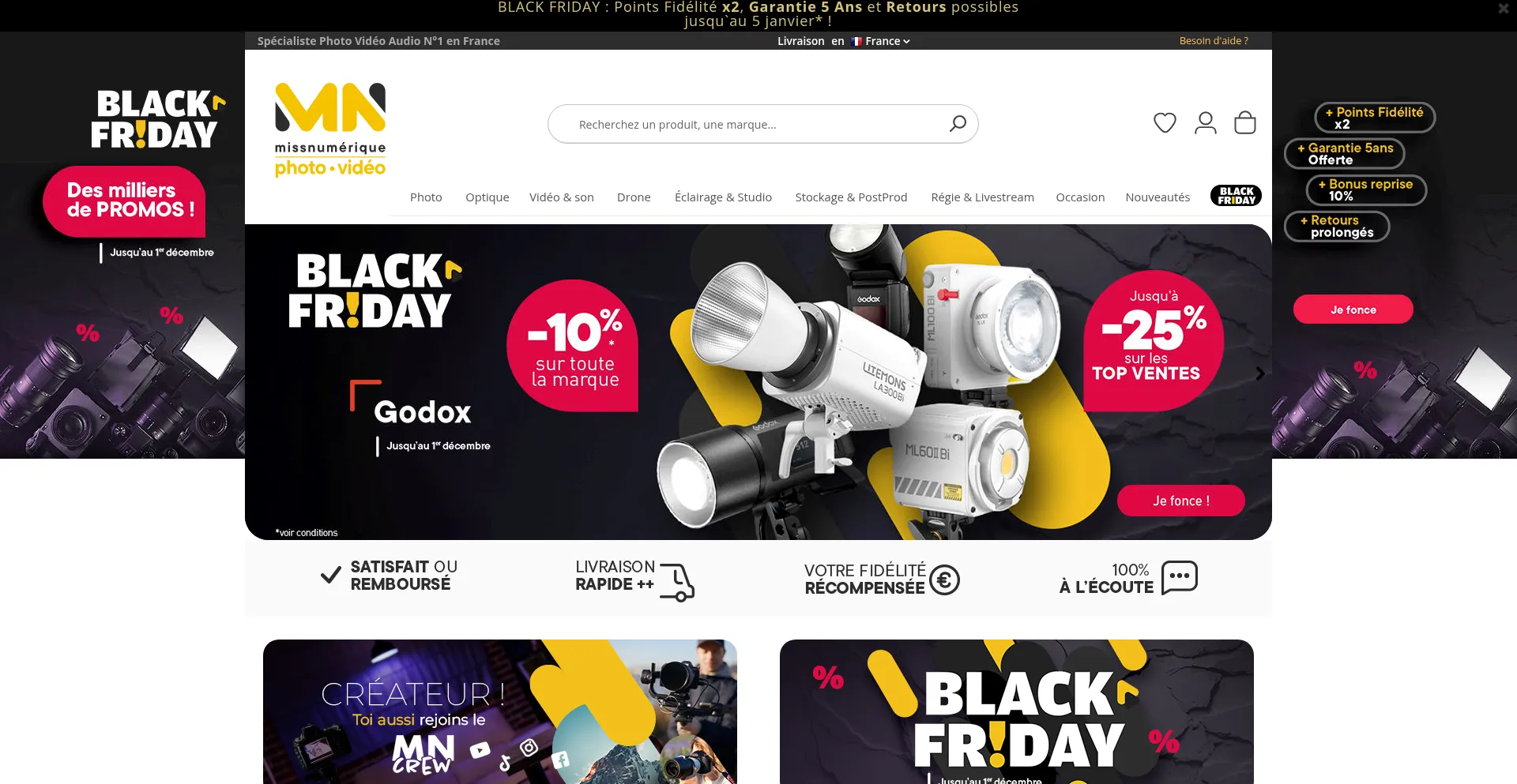 Le plus grand choix de matériel photo et vidéo sur internet : reflex, hybride, camera, drone, sac, objectif, éclairage studio... Service professionnel et expédition ...