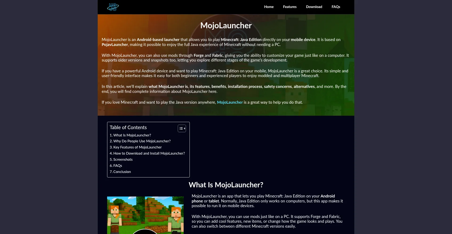 Download MojoLauncher to play Minecraft Java on Android! Enjoy mods, Forge, Fabric, and all versions. Get the full PC experience on your mobile device.