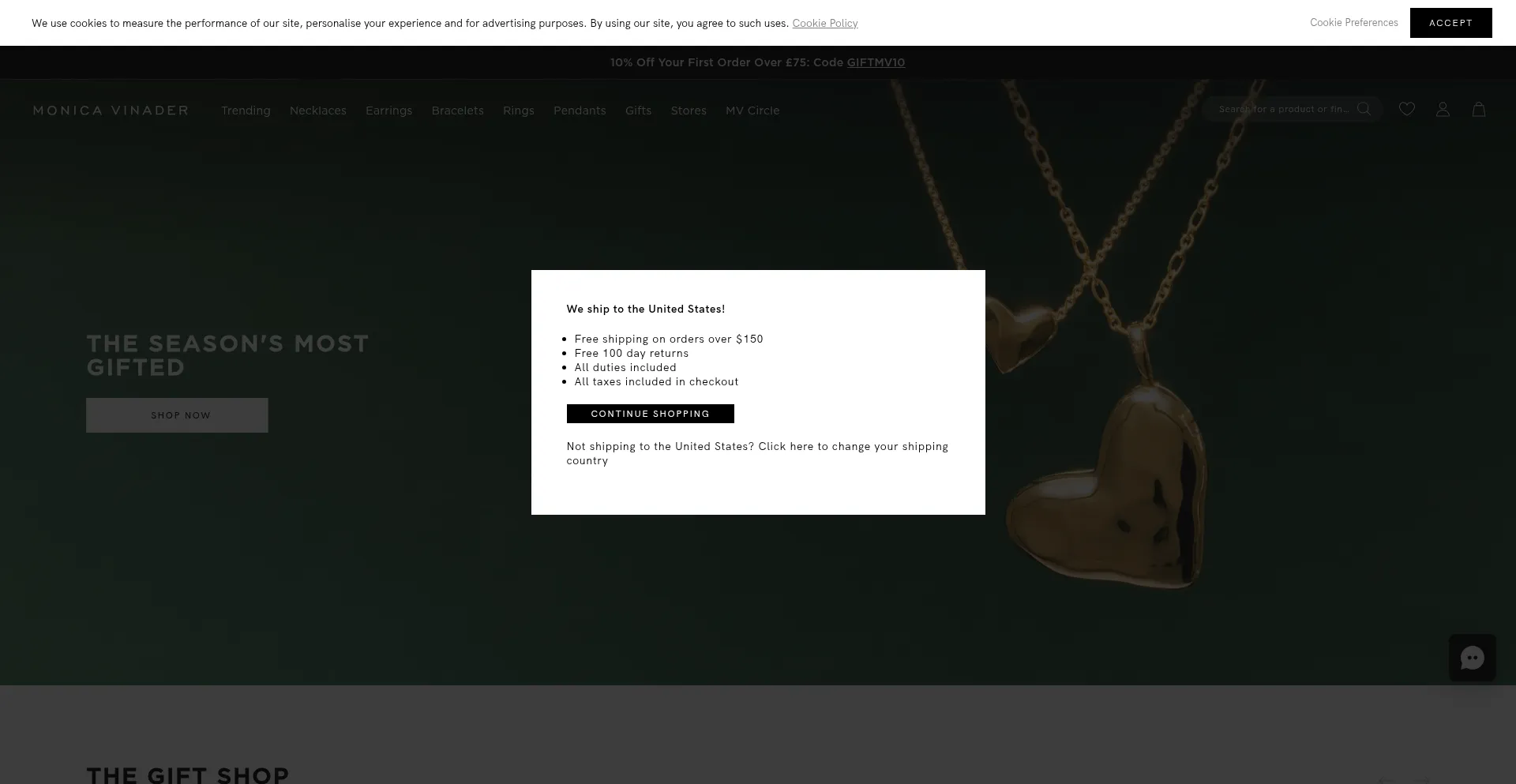El sitio web implementa mecanismos de consentimiento de cookies en cumplimiento con regulaciones de privacidad como GDPR o CCPA. Esto demuestra que monicavinader.com adhiere a estándares de protección de datos y proporciona a los usuarios control sobre prácticas de recolección de datos personales.