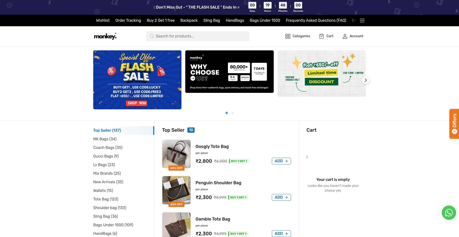 Born in 2021, Monkey Bags is redefining affordable luxury in India. Explore stylish, premium-quality handbags at honest prices — with free shipping, 7-day delivery, and easy C...