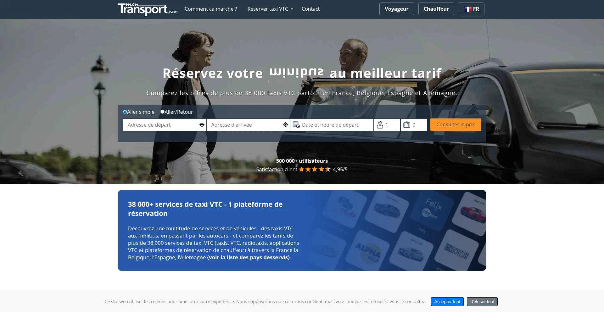 Comparez et réservez taxis, VTC, minibus et autocars en France, Belgique, Espagne et Allemagne. Meilleur prix garanti, enchères rapides et offres en temps réel !