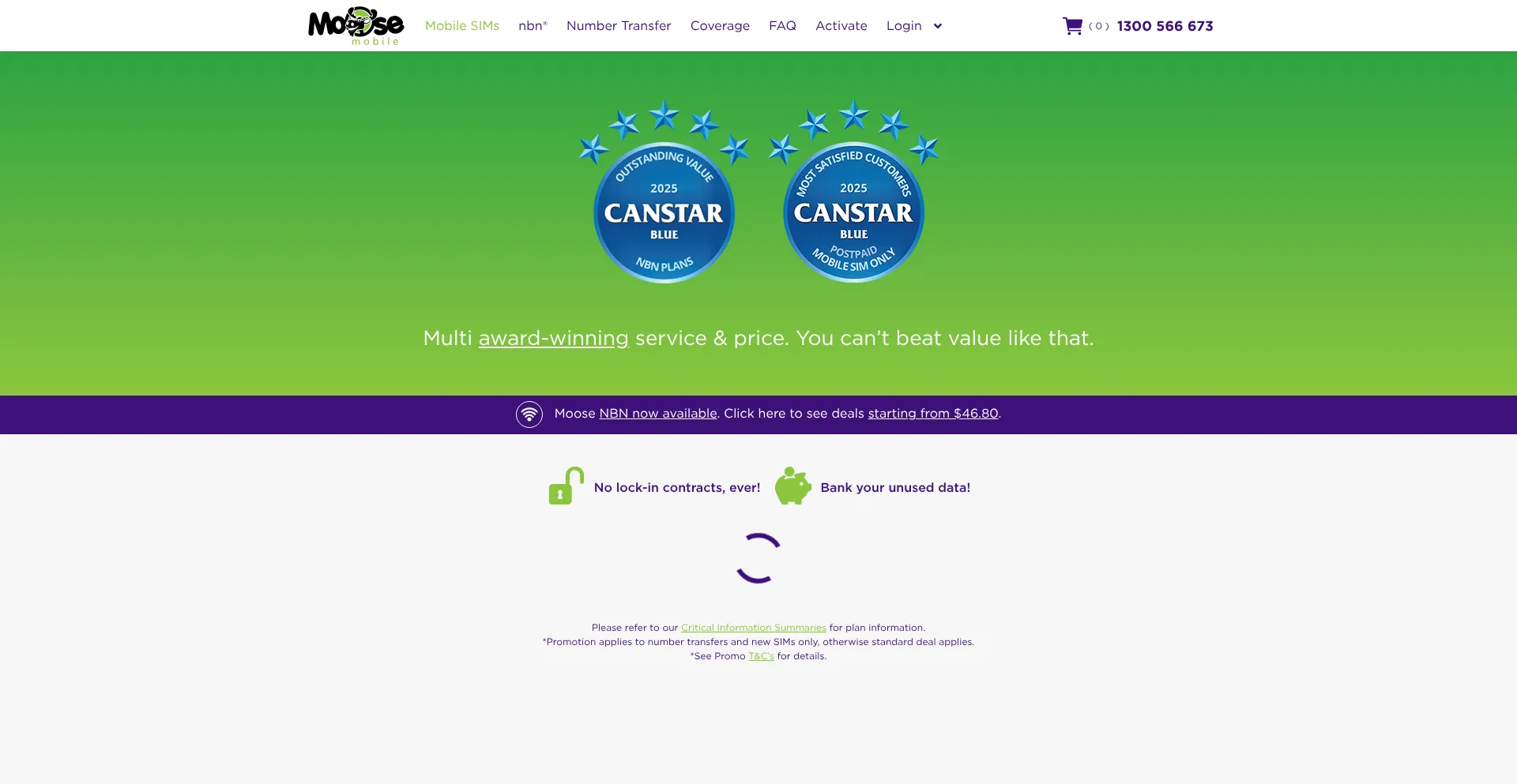 The only telco ever to win both the 'Most Satisfied Customers' and 'Outstanding Value' Canstar Awards in the same year.